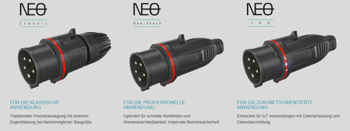 Einfacher und besser in jeder Hinsicht: Die neue CEE-Steckvorrichtung NEO zeichnet sich durch eine Fülle von praktischen und innovativen Optimierungen aus. Dabei wurden drei Produktvarianten für unterschiedliche Anforderungen entwickelt: Classic, One-Touch und IPD.
