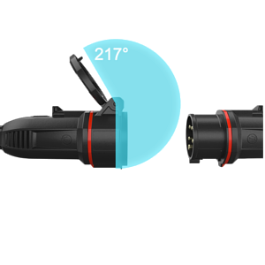 -Vergrößerter Öffnungswinkel des Kupplungsdeckels für Kraftabscherung bei mechanischen Widerständen -Leichtes Stecken von Stecker und Kupplung, da der Deckel in geöffneter Position optimal gehalten werden kann