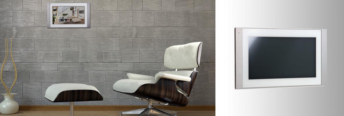 Ein gefräster Alurahmen mit eingelassener Glasfront dient als berührungsempfindliche Oberfläche für den Multitouch. Durch seine edele Optik lässt sich der Unterputz Touch PC in jede Umgebung passend integrieren. Sie haben die Wahl das Panel als reines Touch Panel oder als Touch PC zu konfigurieren. Das garantiert eine hohe Flexibilität. Ideal ist auch die Ausstattung mit Mikrofon und Aktiv-Lautsprechern, um das Gerät an eine Türsprechanlage oder ein Intercom-System anschließen zu können. Durch das Unterputzgehäuse lässt sich das Touch Panel in jede Wand oder Hohlwand integrieren. Optional kann im UP-Gehäuse ein  USB / LCN Controller für den direkten Buszugriff installiert werden.